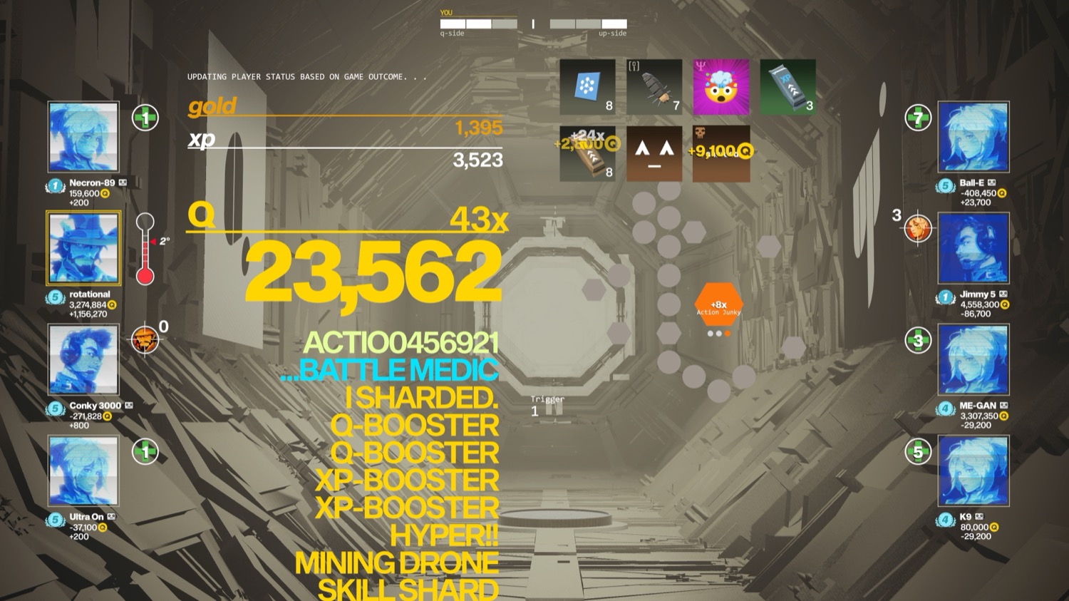 Released soon after Unfair Flips, Q-UP is another game about tossing coins. But Q-UP is more dense and cerebral, finding an intricate puzzle game inside a sharp critique of online multiplayer games and how they use randomness, ranking and match-finding systems to exploit player psychology. That puzzle game is so good that Q-UP feels, frankly, dangerous, because despite its satirical nature, it’s a profoundly compulsive game on its own terms. You flip the coin and then you watch the numbers go up, and up, and up, and up, and then you tinker with your abilities and you do it again and again and again.