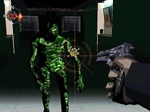 Killer 7’s bold visual style, self-consciously cryptic cutscenes and disparate control scheme hides a relatively simple game structure. Not a simplistic game, though. Killer 7 is about precision and puzzle solving. Each enemy demands a different technique to kill it efficiently, a weak spot to be exploited, an appropriate skill to be employed. The stark precision of the graphics mirror the precision that you have to use for each shot. You can blast away indiscriminately to start with, but soon, to kill fast, you need to shoot accurately and with thought.